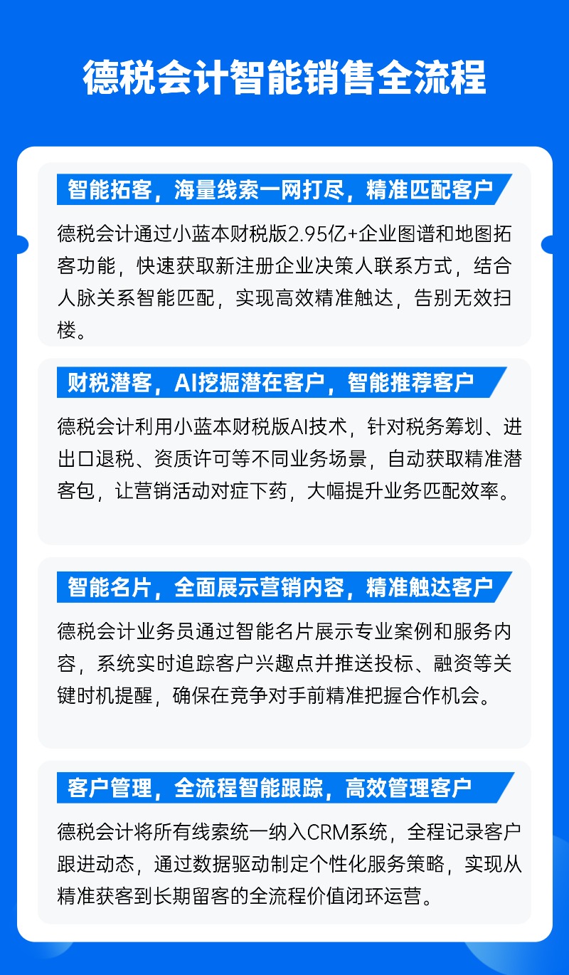 德税会计敢于打破传统拓客的路径依赖,将专业服务能力与小蓝本的AI技术深度融合。这种“专注做业务、持续练内功、持续拓边界”的战略定力,不仅为自己赢得了增长新曲线,更为整个财税服务行业提供了可复制、可落地的方法论样本。