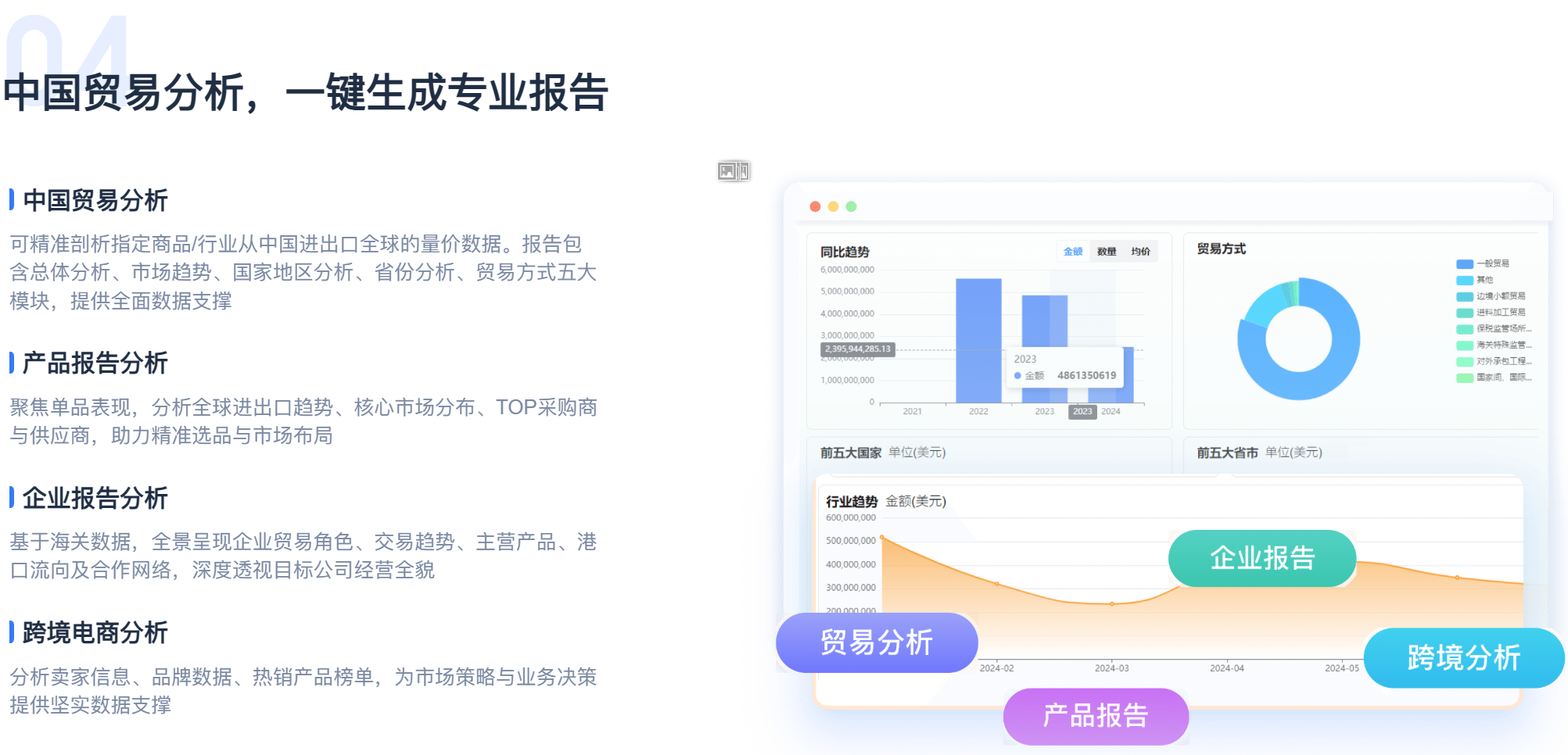 小蓝本外贸版的核心壁垒,在于其构建的专业级数据护城河。平台整合240个国家和地区的106亿+条动态更新的海关贸易记录、2.95亿+企业图谱及7.2亿+精准邮箱,打造出全球贸易的“数字孪生”。用户只需输入一个HS编码,即可穿透整个产业链,清晰看到目标产品的全球流向、核心采购商、主要竞争对手及其供应链网络。这种“上帝视角”,让企业能主动发现“客户的客户”,提前卡位新兴市场,变被动等待为主动出击。
