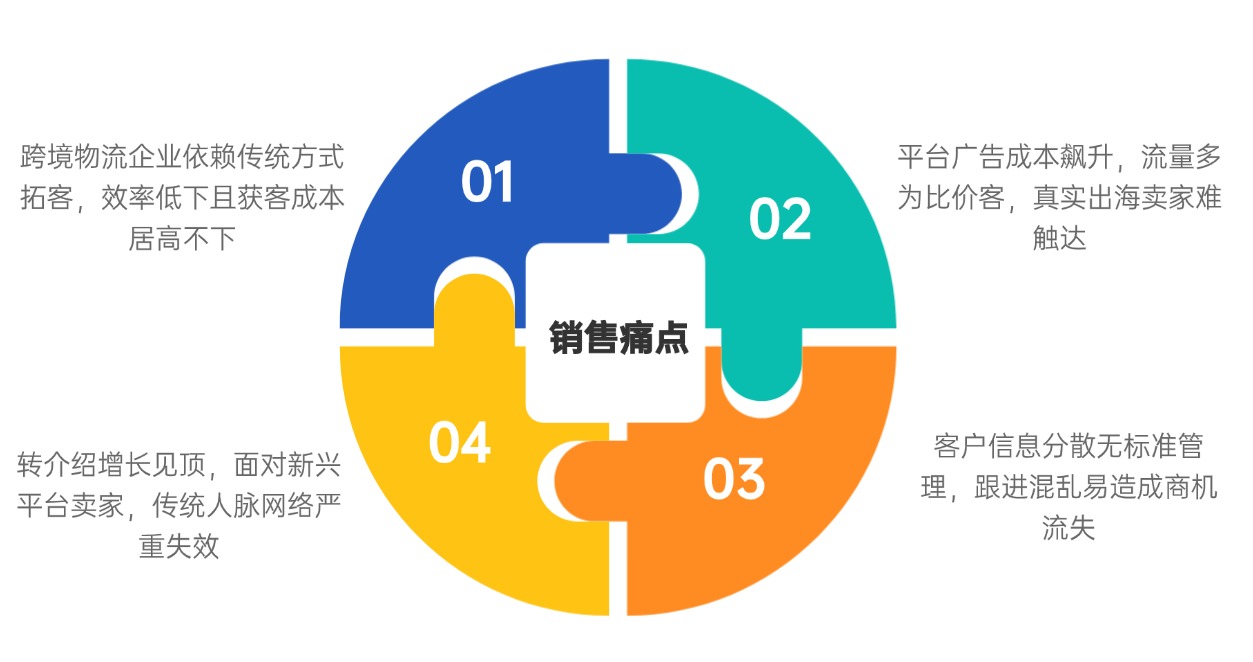 线下展会动辄投入上万,三天换来几百张名片却九成石沉大海,销售团队后续跟进疲于奔命却难见实效;平台广告竞价白热化,巴西专线等关键词单次点击成本居高不下,流量来了却多是比价客而非真实有出海需求的卖家,转化率长期低迷;社交媒体被动等待咨询,信息流中企业身影被海量广告淹没,即便偶有留言也常是初级运营人员,难触企业供应链决策层;依赖老客户转介绍虽稳却慢,业务增长遭遇天花板,面对TikTok、TEMU等新兴平台崛起的卖家群体,传统人脉网络几乎失效,新市场拓展举步维艰。