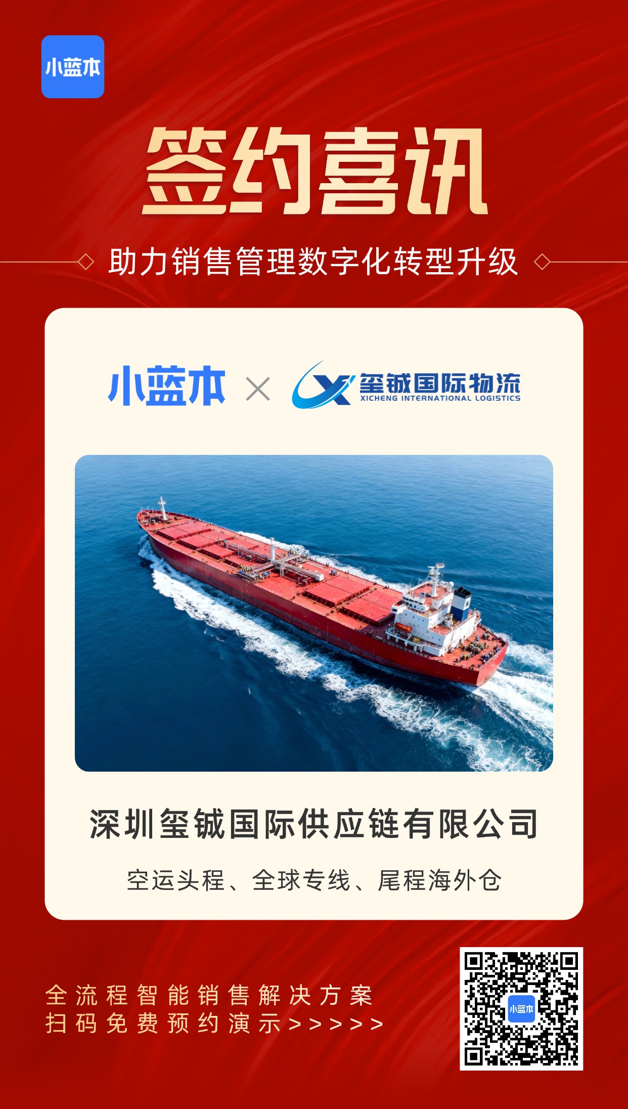 数字化转型不是选择题,而是必答题;不是要不要转,而是如何转得更快更稳。在跨境物流这个高速发展的赛道上,唯有主动求变、拥抱数字化,才能在激烈的竞争中站稳脚跟,抢占市场先机。玺铖国际始终坚守“科技驱动物流质变”的愿景,持续深耕跨境物流领域,持续优化自身服务,持续深化与小蓝本的合作,借助小蓝本跨境物流版的智能赋能,不断提升自身的数字化能力和核心竞争力,用专业的服务赋能更多跨境卖家出海。