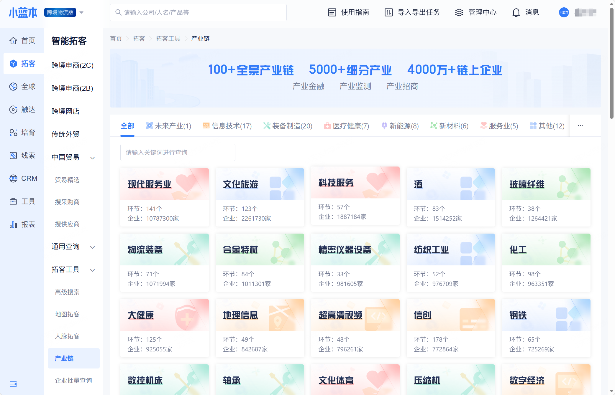 点击体验👉小蓝本跨境物流版-国际物流营销获客系统