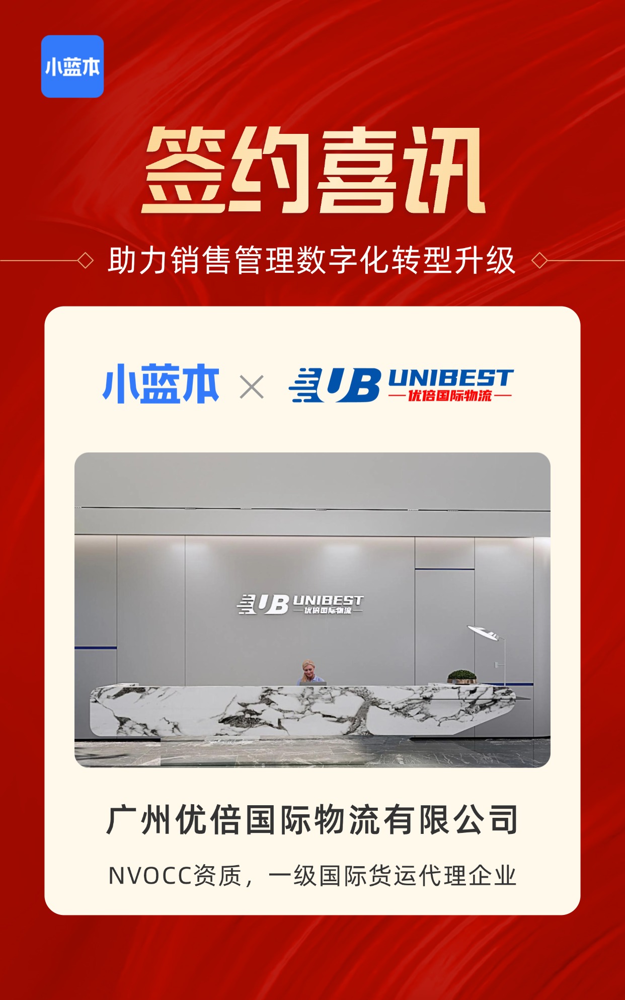 选择小蓝本跨境物流版,不仅是选择一套工具,更是选择一种面向未来的增长方式。小蓝本跨境物流版始终作为优倍的“数字化伙伴”,用海量数据、智能工具,为优倍物流的变革之路保驾护航,让优倍物流得以将更多精力投入核心业务,专注为客户提供更专业的物流解决方案。