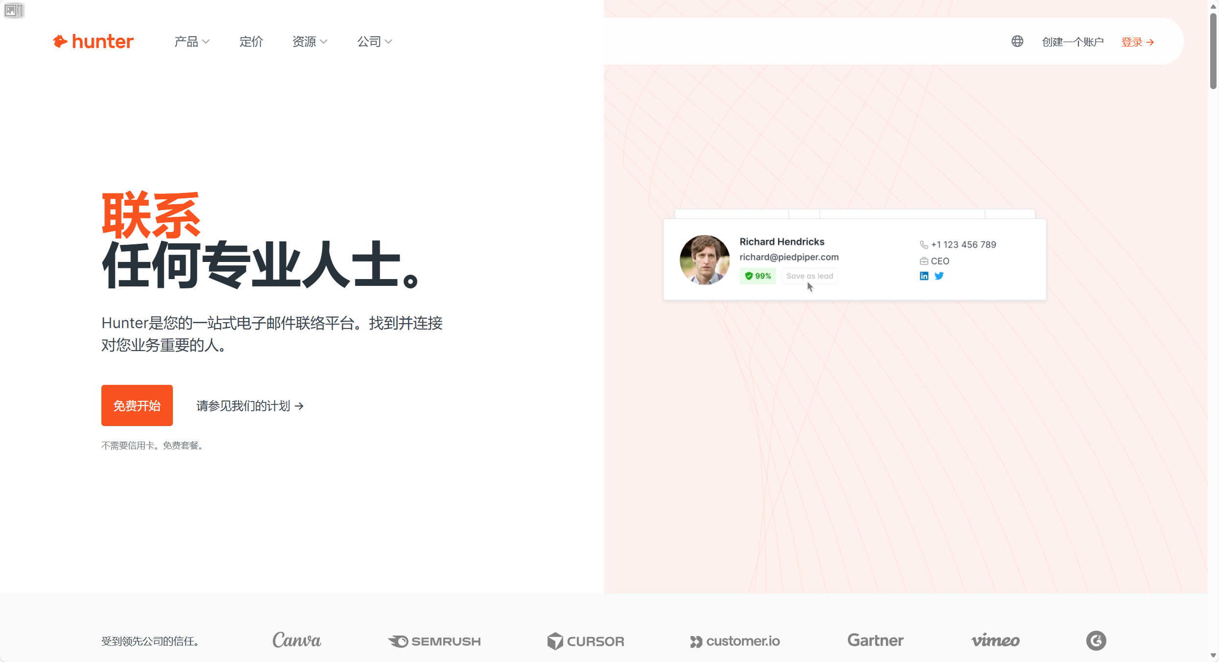 Hunter是专注于企业邮箱挖掘与验证的外贸拓客工具,成立以来已助力全球用户挖掘超10亿条邮箱地址,以“高合规性+操作便捷”为特色,深受中小外贸团队青睐。